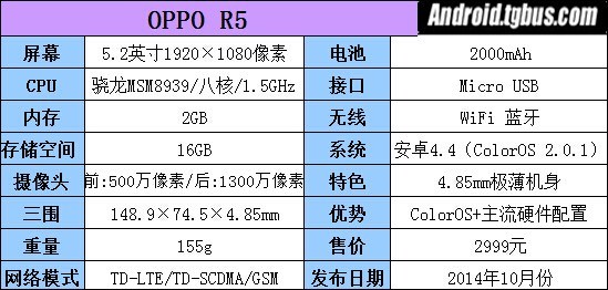 開頭已經說到,OPPO R5雖然以“薄”為賣點,但它遠不止這個。它采用了64位高通骁龍615八核處理器,運行內存為2GB。前500萬後1300萬像素雙攝像頭可以提供不錯的成像質量。屏幕選用1080P AMOLED技術,顯示圖片對比度高。另外R5還有獨家冰巢散熱系統與VOOC閃充功能。