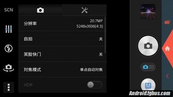 至於MX4,界面就比索尼簡單很多了,許多控制被放在了SmartBar裡頭,左右滑動可以切換拍照模式。