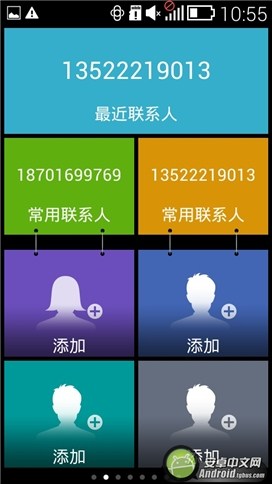 海信心意手機會自動顯示最近聯系人和常用聯系人,除了上面這三個聯系人是由手機自動生成外,還能手動添加四個聯系人,這四個位置是為家人預留的,當發生緊急情況時可以快速找到能幫助用戶的人。而紅米Note手機在快速聯系人界面上有六個可供用戶添加的位置,如果是針對中老年人使用的話,這未免有點多了。