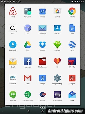主屏幕、應用頁面和狀態欄給人的第一印象與以前沒有很大區別,但谷歌搜索欄采用了Material Design而且不再是透明的,底部的軟導航鍵現在看上去更像PlayStation游戲手柄上的按鈕:側三角形的返回按鈕、圓形的Home按鈕以及方形的多任務菜單。