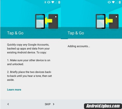 安卓5.0的安裝過程比以往更加輕松快捷。一項叫做“Tap and Go”的安裝功能可以通過藍牙將舊手機上的應用、設置和個人偏好傳輸到新手機上,但是設備之間需要通過NFC進行配對,如果麼有NFC就需要進行手動恢復。