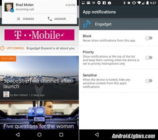 安卓5.0還可以設置某些應用的通知優先級,從而在“免打擾”(Do Not Disturb)模式下也能收到重要通知——這項功能叫做“Interruptions”。
