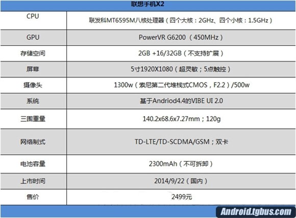 聯想手機X2的綜合配置方面達到了當下的旗艦規格,包括最新的聯發科八核MT6595M處理器、2GB內存、1080P屏幕、1300萬像素攝像頭,雖然不是頂級配置,不過這樣的性能也是滿足當下使用,性能不在頂級不過也是不容小觑。