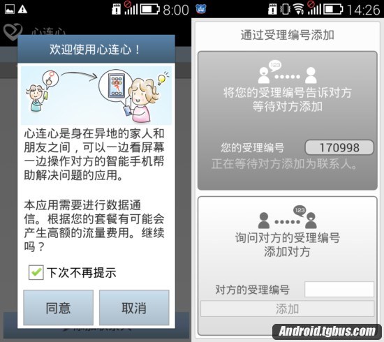 左側(兒女接收手機)右側父母手機請求支持