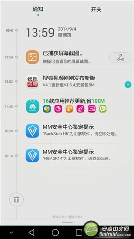 ▲EMUI3.0下拉菜單