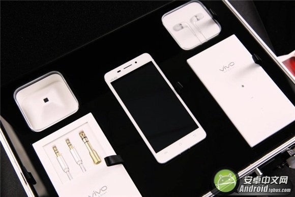 打開箱子後首先映入眼簾的是vivo X5以及它的相關配件,比如XE600i耳機、Micro USB數據線、電源適配器、使用說明書、AUX線纜以及雅馬哈YSS205芯片等物件。