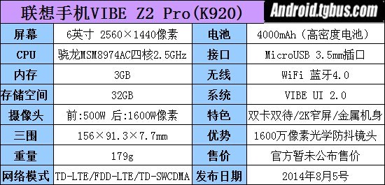 VIBE Z2 Pro擁有諸多特點,6英寸的2K大屏擁有極窄邊框,PPI高達491;采用高通骁龍801的2.5GHz四核CPU,玩游戲、運行大型軟件都不在話下;雙卡雙待支持雙4G網絡制式;4000mAh高密度大容量電池可使它待機更持久;1600萬像素的後置攝像頭擁有光學防抖功能,拍出的照片更加清晰美觀;VIBE UI 2.0系統也更加美觀實用。當然,這些都是官方宣傳的特點,小編後面將會對它進行逐一測試,看看它的使用情況有沒有官方介紹的那麼好。