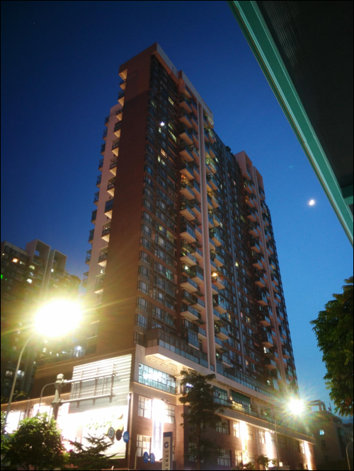 來看第一組對比樣張,大約拍攝於19點30分作於,此時太陽還未完全下山,所以有一定的光亮,再加上周邊的路燈等已經開啟,所以光線並不是很糟糕。