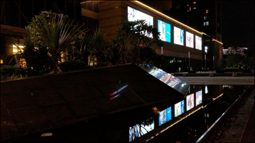 來看第二組照片,稍微晚一些的時候,天已經完全黑了,周圍光線一般,僅剩遠處的幾塊廣告牌的光線。