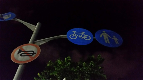 最後,我們再來看一組全暗環境下的照片,周圍幾乎沒有任何燈光,僅有遠處的路燈提供了一點微弱的燈光,讓肉眼可以勉強看清路牌。