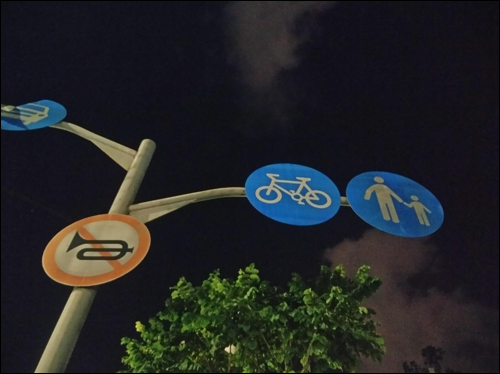 其中,上圖為三星Galaxy S5拍攝,下圖為vivo Xshot拍攝,這個時候,vivo Xshot的F1.8大光圈的優勢就比較明顯了,整個畫面的亮度明顯要高於三星Galaxy S5,不論是在樹葉上,還是後面的天空上,都要好於三星Galaxy S5,甚至三星Galaxy S5的天空還與一些微微的發紫,不過也正是由於這個原因,使得vivo Xshot拍攝的路牌有一種被專門照亮的“閃光燈”感覺,但實際上是沒有開啟閃光燈的。