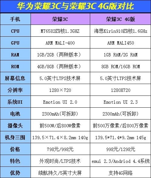 華為推出3C的時候就有很多人拿來跟紅米作比較,現在華為又推出了榮耀3C 4G版,擺明