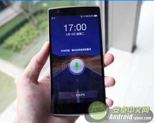 接下來是巴士小編親自實踐了,輕敲兩下手機屏幕,喚醒手機屏幕,這個時候出現在手機最左邊的界面就是之前錄制的聲紋解鎖,一加手機在使用升溫解鎖的時候,不管你的手機是放在桌面上還是嘴邊都是可以順序解鎖的。解鎖整個過程只要1~2秒時間,當然如果用戶在室外解鎖的話,會因為室外有雜音,而造成解鎖概率降低,這也是情有可原的。如果語音實在無法解鎖的話,用戶可以點擊錄音圖標下面的"X",輸入我們之前輸入的圖案解鎖。
