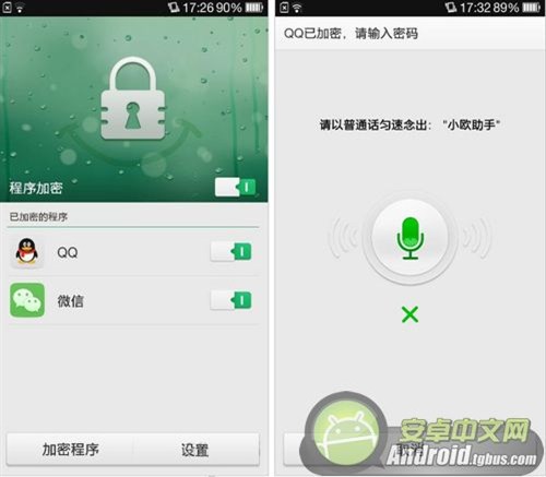 除了界面解鎖功能之外,聲紋識別也可以對自己的手機的各種信息進行加密工作。進入到設置界面,找到安全服務,選擇程序加密。其中主要包含了圖案、密碼以及聲紋加密三個選擇,同樣的,錄入密碼的時候,總共要輸入五次次啊可以。密碼輸入完畢,用戶就可以選擇自己要加密的程序了。