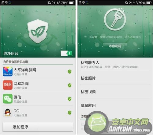 當然除了聲紋加密之外,一加手機系統還內置了安全服務等方面也是非常齊全的,可以說第三方安全軟件就不需要了。其中主要包含了病毒掃描,防止後台扣費、偷跑流量等情況;程序的權限管理,用戶擁有最高的權限對程序進行允許或是組織與否,純淨後台允許保留一定的數據,其他的程序就不能在後台運行了,在訪客模式中,其他的朋友就不能看到你的照片或是視頻了。
