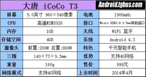大唐手機雖然不是手機市場上的焦點,但這款千元神機一現身就在市場上就吸引著不少購買者。主打4G功能的ICOCO T3售價才999元。至於它為什麼會那麼便宜,下面就讓小編來評測一下,是否ICOCO T3真的值這個價錢!