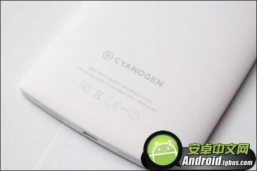小編特別欣賞機身側邊的銀框設計,讓一加手機看起來比較有金屬感,然而上手的時侯感覺不算突出;順帶說一下,國際版背蓋會有 Cyanogen 的字眼。