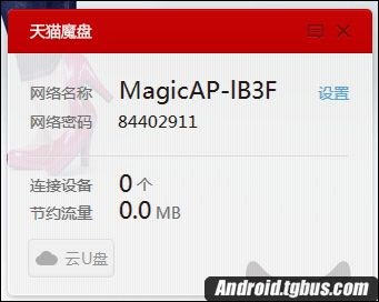 當然天貓魔盤可以設置網絡名稱與密碼,不過沒有更加高級的進行設備管理稍微有點不足,不過考慮到針對的人群主要是某些限制無線wifi的工作地點,這個還是能夠接受的。