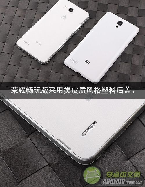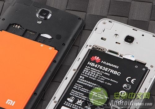 另外在機身背面,紅米Note采用的是亮面鋼琴漆塑料材質,但是榮耀3X暢玩版則采用了與三星Note3相似的仿皮質文理塑料後蓋。用戶可以根據個人喜好進行選擇,但是值得關心的,紅米Note的亮面設計對於防止指紋沾染和油污沾染等方面就遠遠不如榮耀暢玩版了,更加細節的是,暢玩版有開啟後蓋的豁口,但是紅米Note就只能通過USB接口打開後蓋了,對於USB接口很不利。