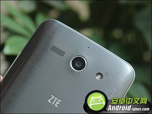 在背面上方,是一枚1300萬像素攝像頭,周圍有金屬邊框裝飾,在攝像頭上方有一個降噪麥克風,左邊是一個揚聲器,而右側擁有一顆LED閃光燈。在背面中間的位置同樣有一個中興的英文logo。
