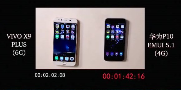 我們選擇了相同的十款APP作為測試應用程序,同樣以手指觸碰第一個APP時開始計時,直到最後一個應用程序完全打開為止。經過實測,冷啟動方面,HUAWEI P10耗時1分42秒,vivo X9 Plus耗時2分2秒。熱啟動方面,HUAWEI P10耗時24秒19,vivo X9 Plus耗時30秒13。可見手機出色的響應、加載速度不僅依托於硬件配置,而且還有相當重要的一個原因,就是手機系統的優化。好的系統就像潤滑油,將人和機器無縫連接起來,不再是生硬的機器語言,更流暢更順滑。這裡的測試結果也印證了余承東在華為P10國內發布會中講到的,EMUI 5.1在手機內存管控上繼續發揮技術優勢,獨創Ultra Memory技術,讓華為手機在4 RAM的硬件比其他手機的6G RAM 更具優勢。