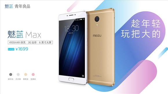 魅藍Max為6英寸1k屏,Helio P10處理器(暫時沒有helio p20版,也沒搭配手寫筆),3GB RAM+64GB ROM, 4100mAh電池,mCharge 24W快充,500萬+1300萬攝像頭,索尼IMX258圖像傳感器,全網通雙卡雙待,VoLTE高清語音,指紋識別,支持微信和支付寶支付,售價1699元,性價比不高。