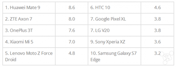 64GB容量:Exynos M1 2.0GHz x4+Cortex-A53 1.5GHz x4,Mali-T880 MP10 GPU。