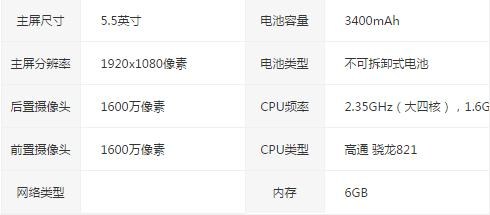 一加3T配置上換裝為高通更新的旗艦處理器骁龍821;前置攝像頭從之前的 800 萬像素升級為 1600 萬;電池容量從 3000mAh增加到 3400mAh;在原有的 64GB 機身存儲版本中,增加了 128GB 的版本的選項,一加3T的配置槓槓的。
