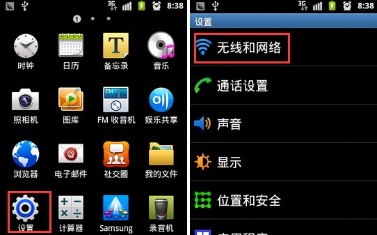 1、打開手機應用列表,進入設置,無線與網絡。