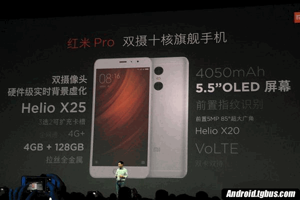 紅米Pro尊享版:搭載聯發科Helio X25十核處理器、4GB運行內存、128GB存儲空間,售價1999元。