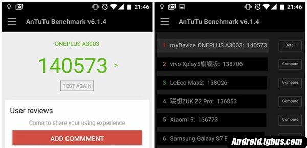 以上就是安兔兔測試,可以看的出來一加手機3跑分成績達到了14萬多分,這樣的成績已經是全球跑分成績數一數二的成績,另外小編了解到,可以達到14萬分的是官方ZUK Z2 Pro尊享版可以實現的成績,強悍的手機配置,高性價比,用戶的福利終於來了。