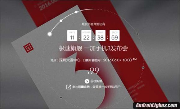 此次一加手機3發布會的門票售價為99元,而發布會定在了6月15日在深圳大運中心舉行,門票將在6月7日10:00正式發售。