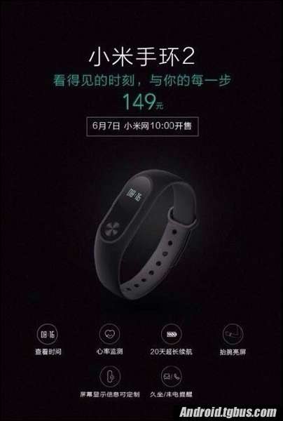 小米手環App啟動界面提前洩露了小米手環2的詳細信息,定價149元,6月7日小米網10:00開售。從外觀來看,最大的改進就是配備了LED顯示屏,旁邊還增加了一個觸摸按鍵。另外,新手環還提供了心率傳感器,可測量心率。