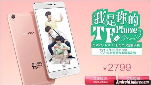 官方表示,OPPO R9 TFBOYS定制機TFphone將於5月21日下午14:30在全國30家線下零售店限量發售,共計1200台。此前已在天貓預約的用戶還有機會於5月20日在天貓OPPO官方旗艦店提前搶購。