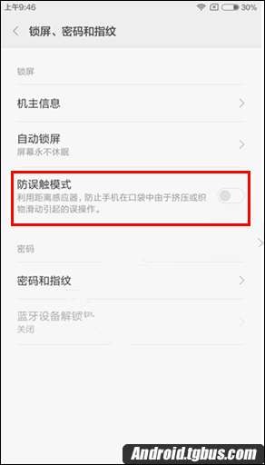 2、然後在其出現的頁面下方找到【防誤觸模式】按鈕開關,開啟即可,如下圖所示。