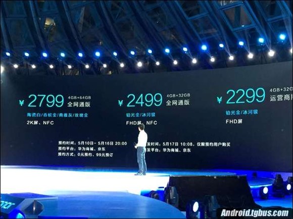 價格上,運營商標准版(4GB內存、32GB存儲)2299元,全網通標准版(4GB內存、32GB存儲)2499元,全網通旗艦版(4GB內存+64GB存儲)2799元,感興趣的朋友們趕緊行動起來吧。