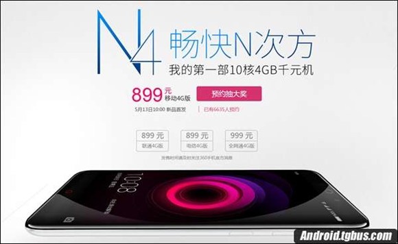 至於價格,據悉360 N4移動/聯通/電信定制版899元,全網通版999元。同時於今天下午4點開始預約,13日上午10點正式發售。