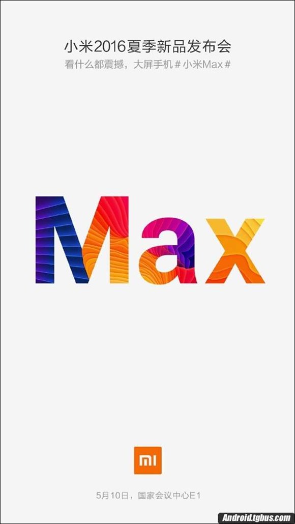 最新消息,小米將在5月10號於北京國家會議中心,召開小米2016夏季新品發布會,屆時小米Max巨屏手機將會和大家見面。