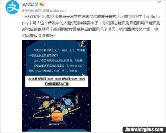 如今的支付寶真是變化多端,但正是因為這些變化,它給我們的生活帶來了很多的便利。昨天,支付寶官方新浪微博發出了一條動態,主要說了關於刷臉支付的內容,並且還附圖說明刷臉送行星票的信息。那支付寶行星船票是什麼呢?下面就跟小編一起來看看吧。