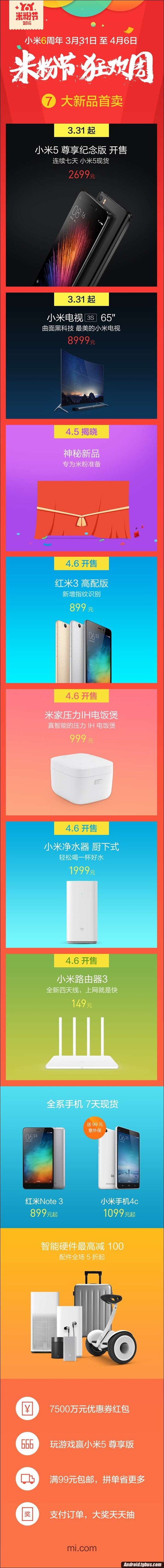 那麼,本次米粉節到底有哪些優惠呢?今天小米也繪制了一張圖表來注明各產品的開賣日期,感興趣的不妨收藏一下。不過在這裡需要提醒大家一下,小米5系列手機雖然號稱現貨開賣,但數量還是十分有限的,尤其是小米5尊享版只有2000台,所以打算入手這款手機的米粉們可要做好充分的准備哦。