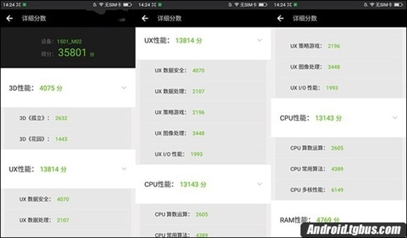 通過測試,360手機F4標准版和高配版安兔兔跑分分別在3.6萬分與3.9萬分左右,兩者差距3000分,相差並不多。由於RAM運行內存的不同,導致360手機F4標准版和高配版有細微的跑分差距。