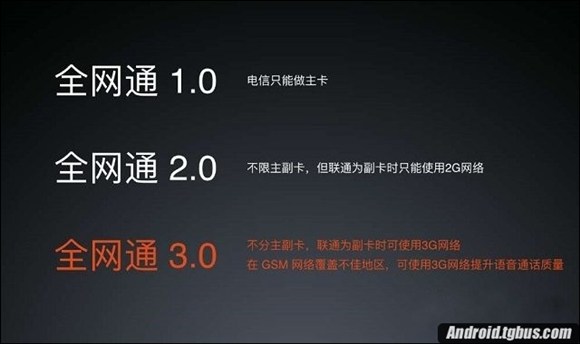 從上面的介紹中我們可以看出全網通3.0和2.0之間的主要區別,在於聯通卡做副卡時,所能支持的網絡制式,前者之前聯通3G/2G,而後者僅支持聯通2G網絡。
