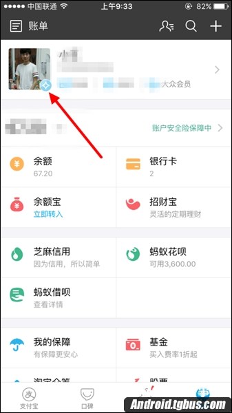 一、打開支付寶,切換至【我的】選項,找到我的頭像,點擊進入,如下圖所示。