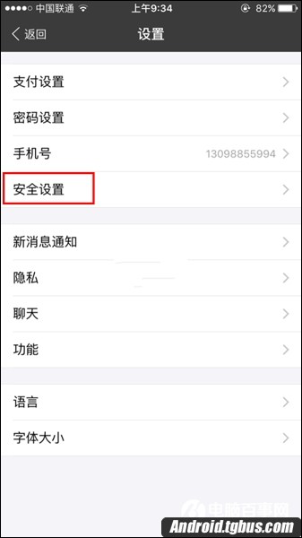 三、接下來在設置頁面下方找到【安全設置】選項,點擊進入,如下圖所示。