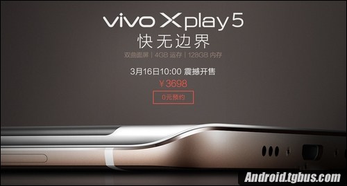 vivo Xplay5旗艦版采用一塊5.43英寸的2K分辨率屏幕,整個外觀最吸引人之處在於正面采用的雙曲面屏幕。機身采用全金屬材質,並搭載有指紋識別,此外,Xplay5上依然搭載有雙引擎閃充技術,充電更快更安全。其他方面,旗艦版搭載高通骁龍820四核64為處理器,存儲方面,旗艦版采用6GB RAM+128GB ROM的組合。相機方面,後置采用新一代Sony IMX298 1600萬像素攝像頭,PDAF極速相位對焦快至0.1秒,前置采用800萬像素攝像頭,電池容量為3600mAh。