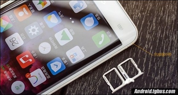 vivo Xplay5的卡槽設計在機身左側,支持4G全網通雙卡雙待,由於機身內置了128GB存儲和OTG功能,因此不支持存儲擴展也是可以理解。如下圖所示: