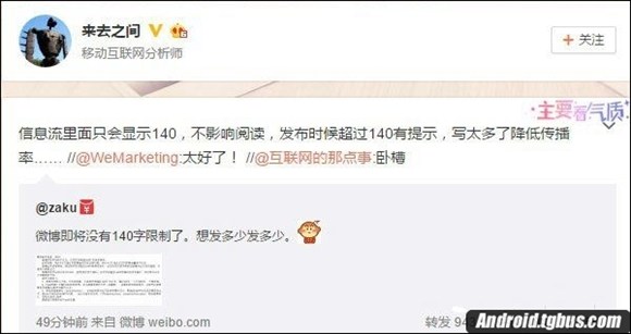 微博開放平台將於近日,正式開放微博140字 的發布限制。