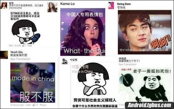目前,在大陸網友成千上萬種“表情包”(而且圖片和語言還都不重樣)的轟炸下,部分內心脆弱的台灣網民被嗆得直接找Facebook網站方面舉報,稱大陸網友的“表情包”太粗暴;也有一些內心堅強的台灣網民,則選擇“盜用”大陸網友的圖片素材,重新制成他們的表情包進行“還擊”。當然,面對台灣網友“盜圖”的情況,大陸網友也采取了一些很“噎人”的應對策略,比如他們紛紛在“表情包”上打上了“中國人專用”、“中華人民共和國專用”的字樣,從而令想“盜圖”的台灣網民們不得不先承認自己是“中國人”。