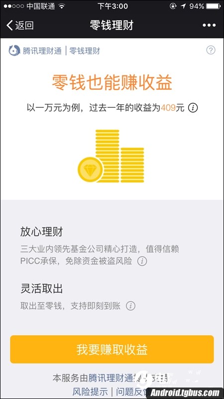3、微信零錢理財是由騰訊理財通打造的,大家盡可以放心,免除資金被盜的風險。