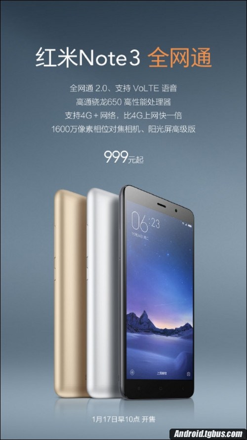 至於大家所關心的紅米Note3全網通版什麼時候上市,據安卓中文網了解,這款手機將於1月 17日(星期天) 正式上市發售,感興趣的朋友們千萬不要錯過哦。
